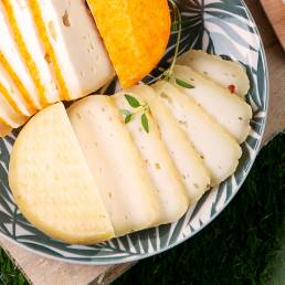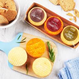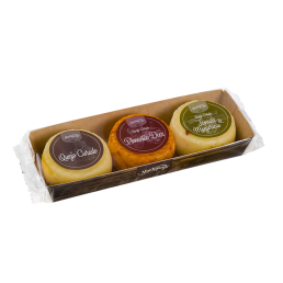 Cesto de 3 Queijos Curados: Queijo de Vaca Simples, Queijo Apimentado, Tomate & Manjericão (90g x 3)