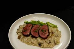 8. Laminar e saltear os espargos para guarnecer o risoto e servir com o magret.